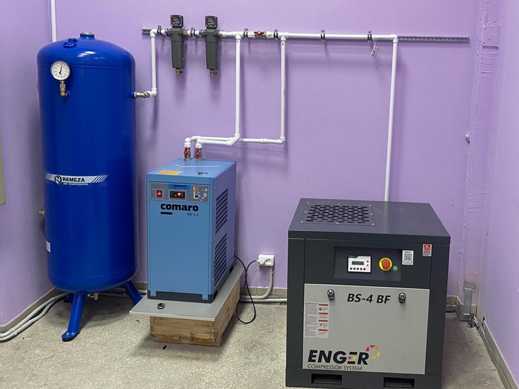 Винтовой компрессор – для цехов с переменной нагрузкой. Проще в эксплуатации, но проигрывает в чистоте воздуха (если речь не о безмаслянных моделях).
