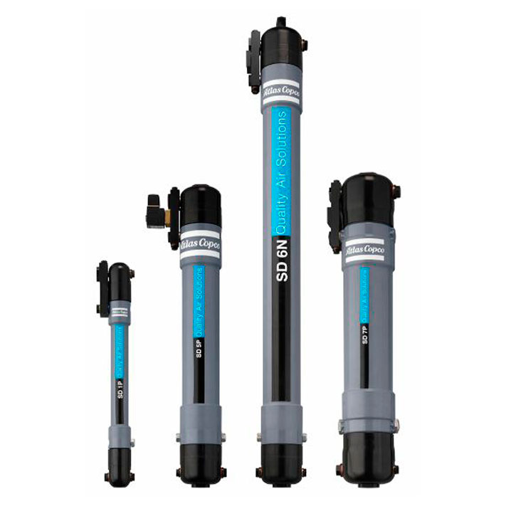 - Ограниченная производительность: мембранные осушители могут быть менее эффективными при очень высоких скоростях потока воздуха. Например, компрессоры Atlas Copco способны осушить порядка 3 кубометров сжатого воздуха в минуту. Для сравнения, адсорбционные осушители того же бренда в шесть раз производительнее.