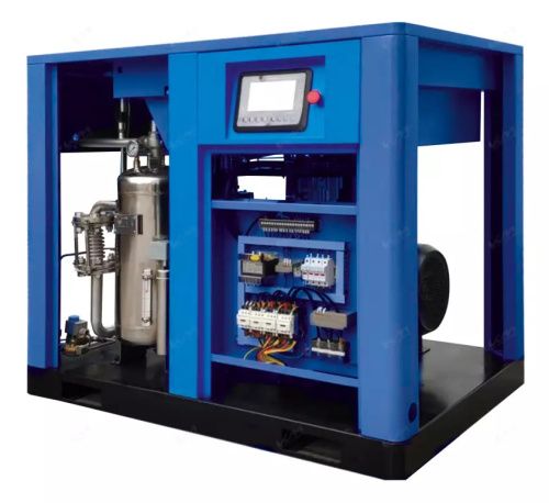 - Энергоэффективность — оптимизация работы двух винтовых блоков снижает энергопотребление и повышает КПД;