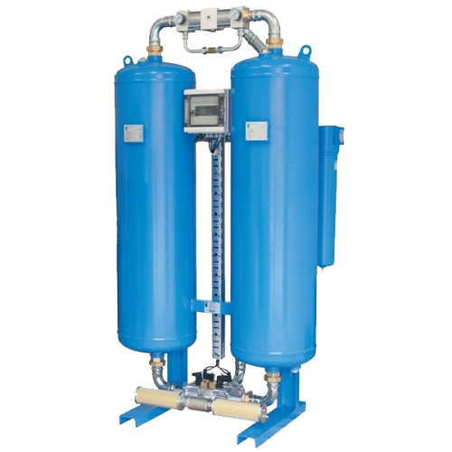 Адсорбционные осушители холодной регенерации применяются для удаления влаги из сжатого воздуха в случае очень высоких требований, касающихся чистоты сжатого воздуха, которые не могут обеспечить холодильные осушители. Значение точки росы этих осушителей может быть установлено на -25°С, -40°С или даже -70°С. Эти осушители работают полностью автоматически. В связи с большими требованиями Диоксида Алюминия (адсорбента) к наличию масла в сжатом воздухе рекомендуется применение фильтра S перед адсорбционным осушителем и фильтра Q на выходе с целью исключения содержания пыли, возникающей при трении гранул, вследствие обратно-поступательного движения сжатого воздуха в осушителе. Восстановление адсорбента в этих осушителях производится методом холодной регенерации, т.е. часть осушенного сжатого воздуха забирается на обратное продувание регенерируемого адсорбера.