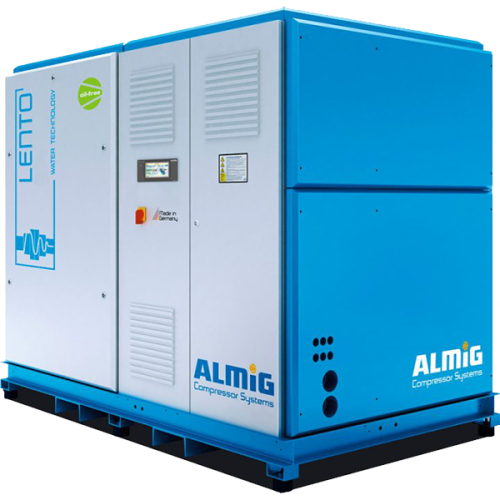 Винтовые компрессоры серии LENTO – это 100% безмасляный и очищенный от механических примесей сжатый воздух, соответствующий классу «0» по маслу, в соответствии с ISO 8573–1:2010. Процесс сжатия сопровождается впрыскиванием воды в винтовой блок. При этом нет необходимости подводить к компрессору внешний источник жидкости, соответствующей технологическим требованиям. Компрессоры LENTO сами обеспечивают себя водой. Постоянное восполнение и обновление воды в компрессоре LENTO происходит благодаря конденсату, который образуется в процессе охлаждения сжатого воздуха во встроенном рефрижераторном осушителе. Во время первичной установки компрессор наполняется обычной водопроводной водой, а в дальнейшем непрерывно генерирует собственную пресную воду. Интегрированная технология SCD, разработанная ALMiG, в режиме частичных нагрузок при переменном потреблении сжатого воздуха позволяет достичь экономии электроэнергии до 35%.