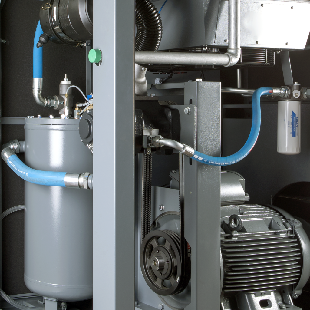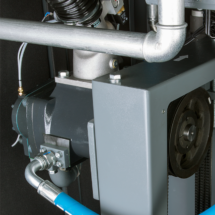 - Благодаря инновационному профилю роторов винтового блока уменьшены потери воздуха при сжатии и требуемый крутящий момент.