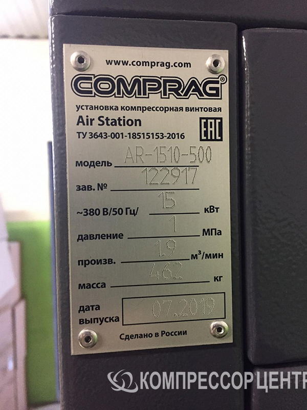 Оборудование: винтовой компрессор "Comprag" АR 1510-500/10