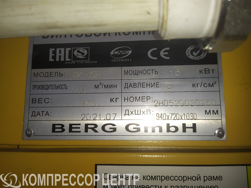 Оборудование: винтовой компрессор "Berg" ВК-15/8