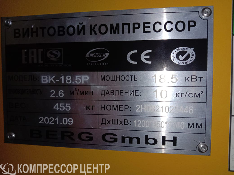 Оборудование: винтовой компрессор "Berg" ВК-18.5Р