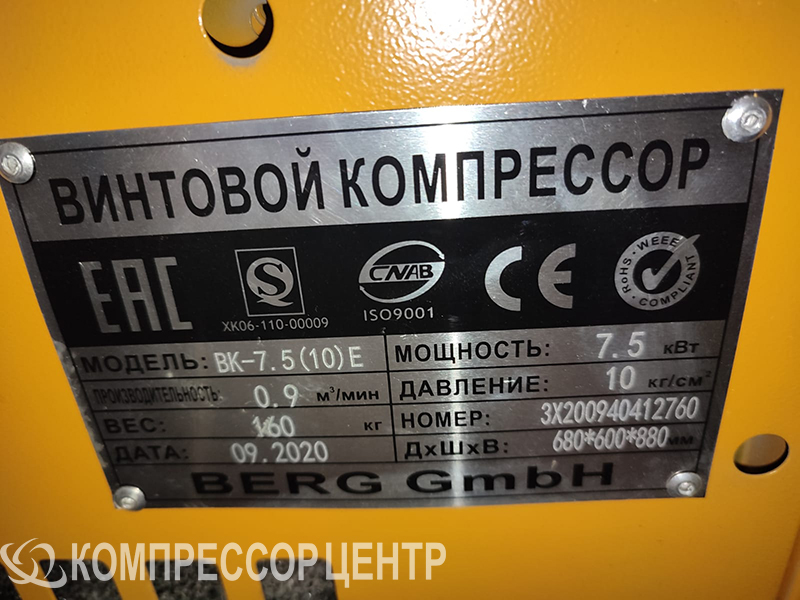 Оборудование: винтовой компрессор "Berg" ВК-7.5/10 Е