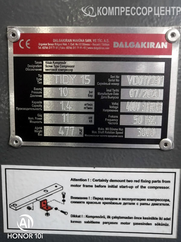 Оборудование: винтовой компрессор "Dalgakiran" TIDY 15-10 500L Compact (с осушителем)