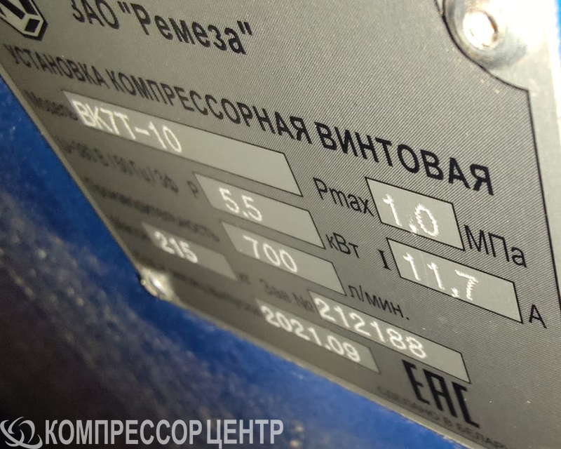 Оборудование: винтовой компрессор "Ремеза" ВК 7Т-10