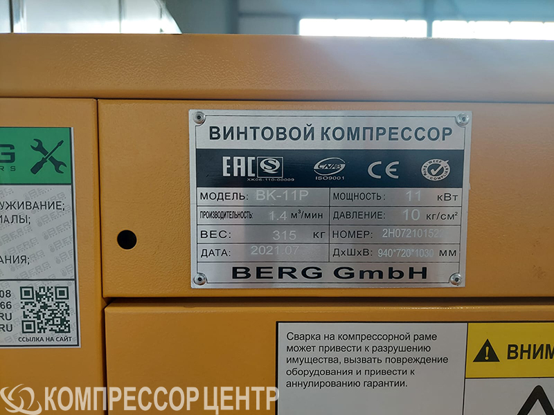 Оборудование: винтовой компрессор "Berg" ВК-11РО-500/8