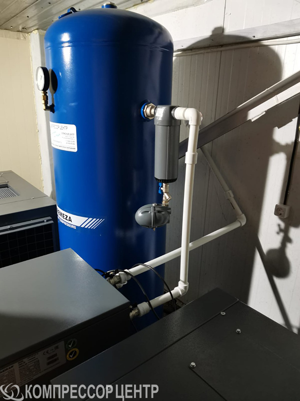 У наших специалистов получилась следующая линия: два винтовых компрессора "Dalgakiran" TIDY15-10, вертикальный ресивер "Remeza" РВ 500.11.02, рефрижераторный осушитель "Dalgakiran" DryAir DK 50, сепаратор центробежный (циклонный) "Dalgakiran" G 200 WS.