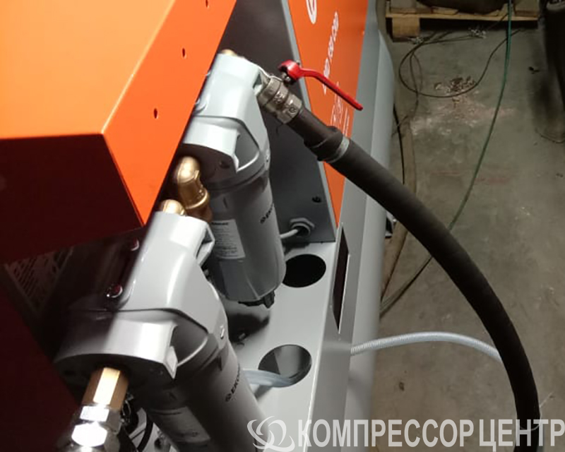 Винтовой компрессор "Ekomak" DMD 150 CRD/10 установлен на горизонтальный ресивер 500 литров с рефрижераторным осушителем серии CAD (точка росы +3 °С, производство Италия). Укомплектован двумя магистральными фильтрами. Благодаря высокой эффективности, низкому уровню шума является отличной заменой поршневым компрессорным установкам.
