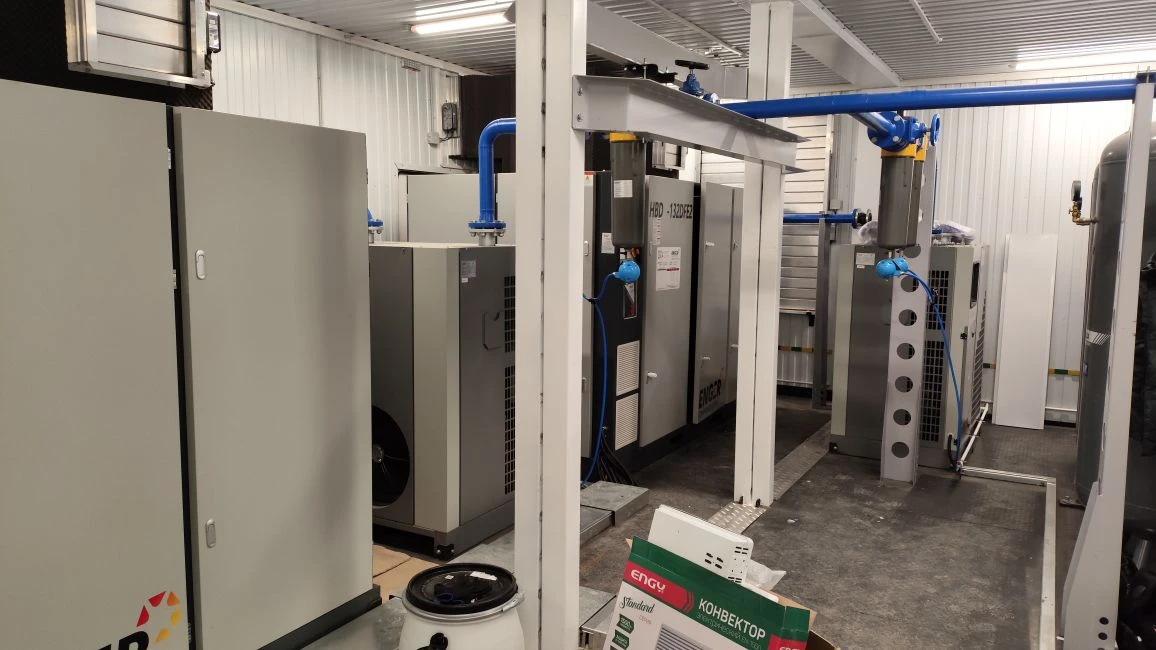- Также предусмотрен комплект магистральных фильтров в сборе с дифманометрами и конденсатоотводчиками Enger, которые обеспечивают чистоту и безопасность воздушного потока.