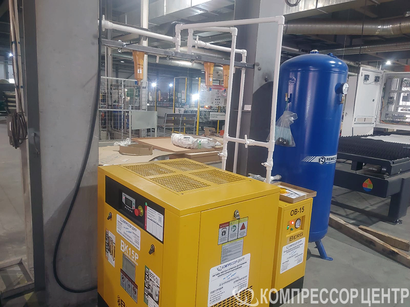 В этот раз подбирали компрессорное оборудование для обеспечения работы лазерного станка. Остановились на бренде "Berg", а точнее на винтовом компрессоре "Berg" ВК-15Р, рефрижераторном осушителе воздуха "Berg" OB-15, вертикальном ресивере "Remeza" РВ 500.16.00 и комплекте магистральных фильтров этого же бренда.