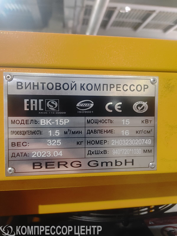 Оборудование: винтовой компрессор "Berg" ВК-15Р