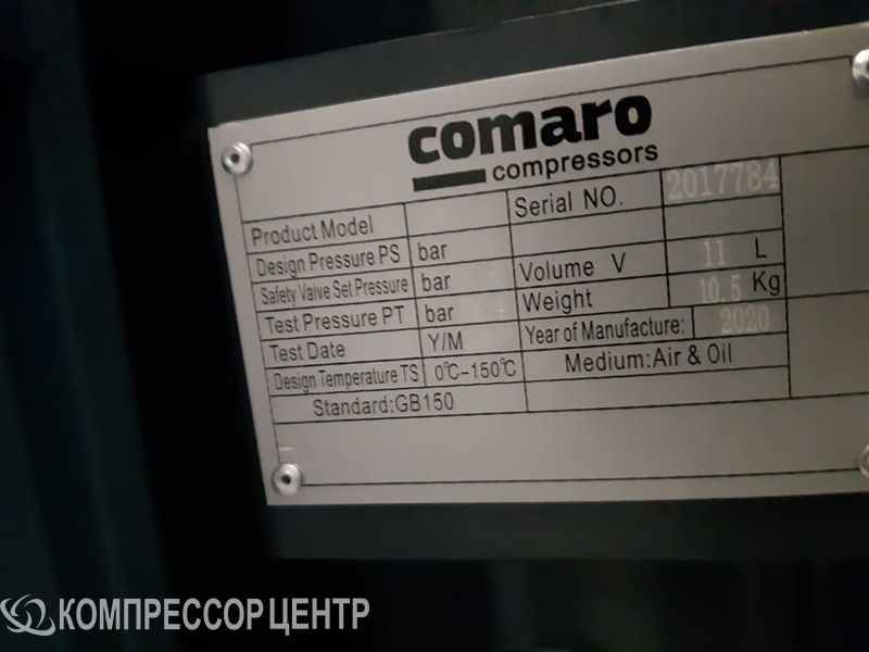 Оборудование: винтовой компрессор "COMARO" XB 11-08 и вертикальный ресивер "Remeza" РВ 270.11.02