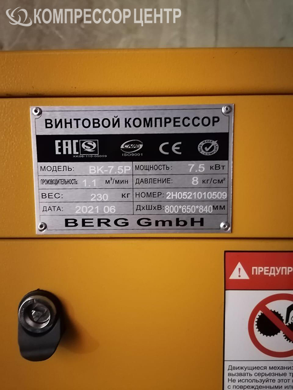 Оборудование: винтовой компрессор "Berg" ВК-7,5РО-500/8