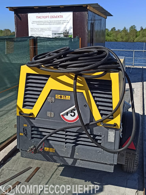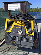 Под все требования идеально подошел винтовой компрессор "Comprag" DACS 3 (на шасси). Он полностью обеспечит достаточное количество воздуха, а его полной заправки хватает на день работы.