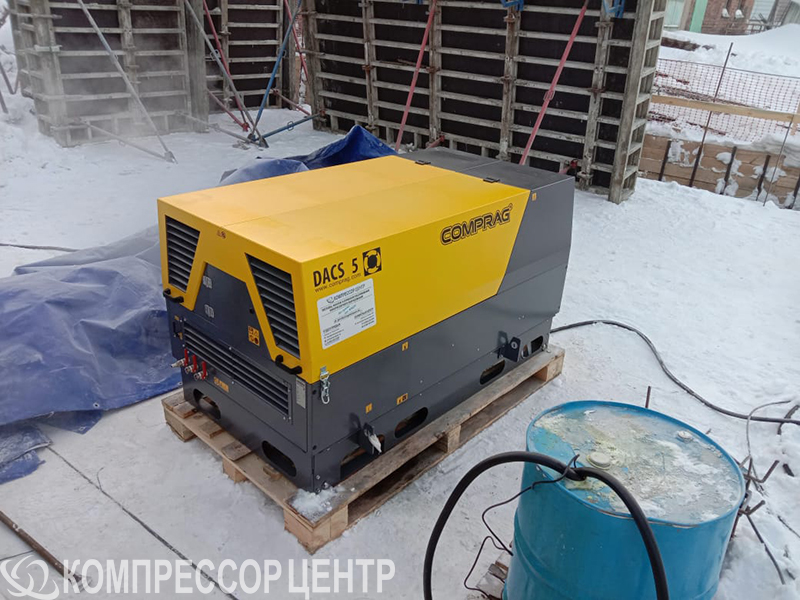 Для работы на строительной площадке компании "Сибтехстрой", г. Новосибирск был выбран винтовой дизельный компрессор "Comprag" DACS 5S (на раме). Остановились на модели без шасси.