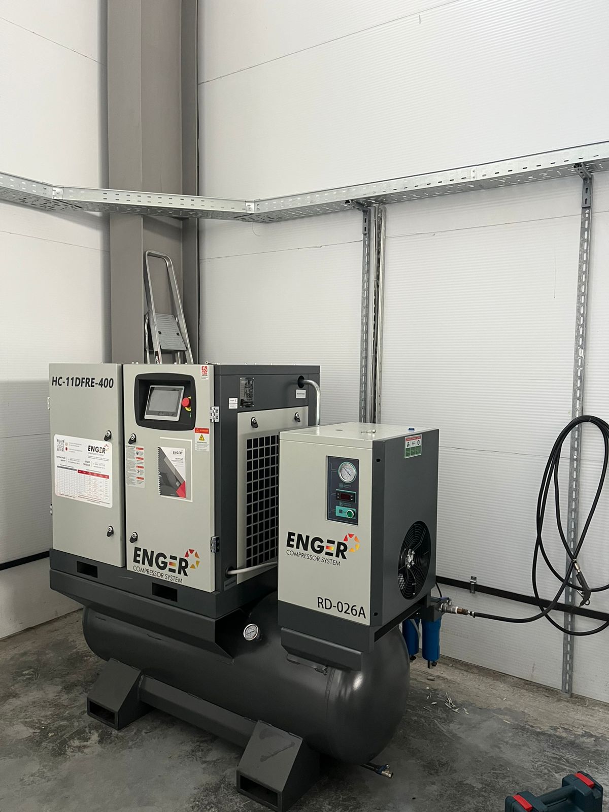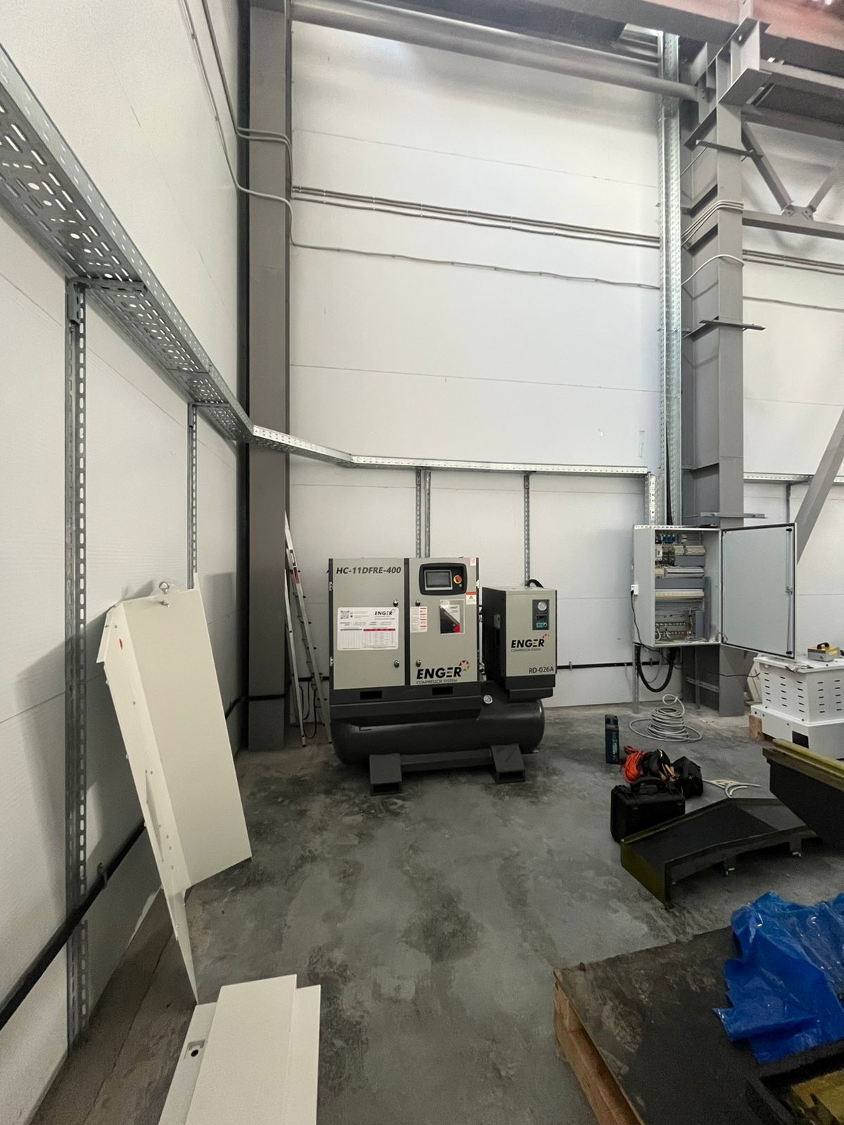 Для производства был выбран Винтовой компрессор Enger HC-11DFRE-400 8 + осушитель.Благодаря проработанной системе защиты элементов, системе фильтрации и охлаждения, компрессоры Enger способны работать в различных производственных условиях.